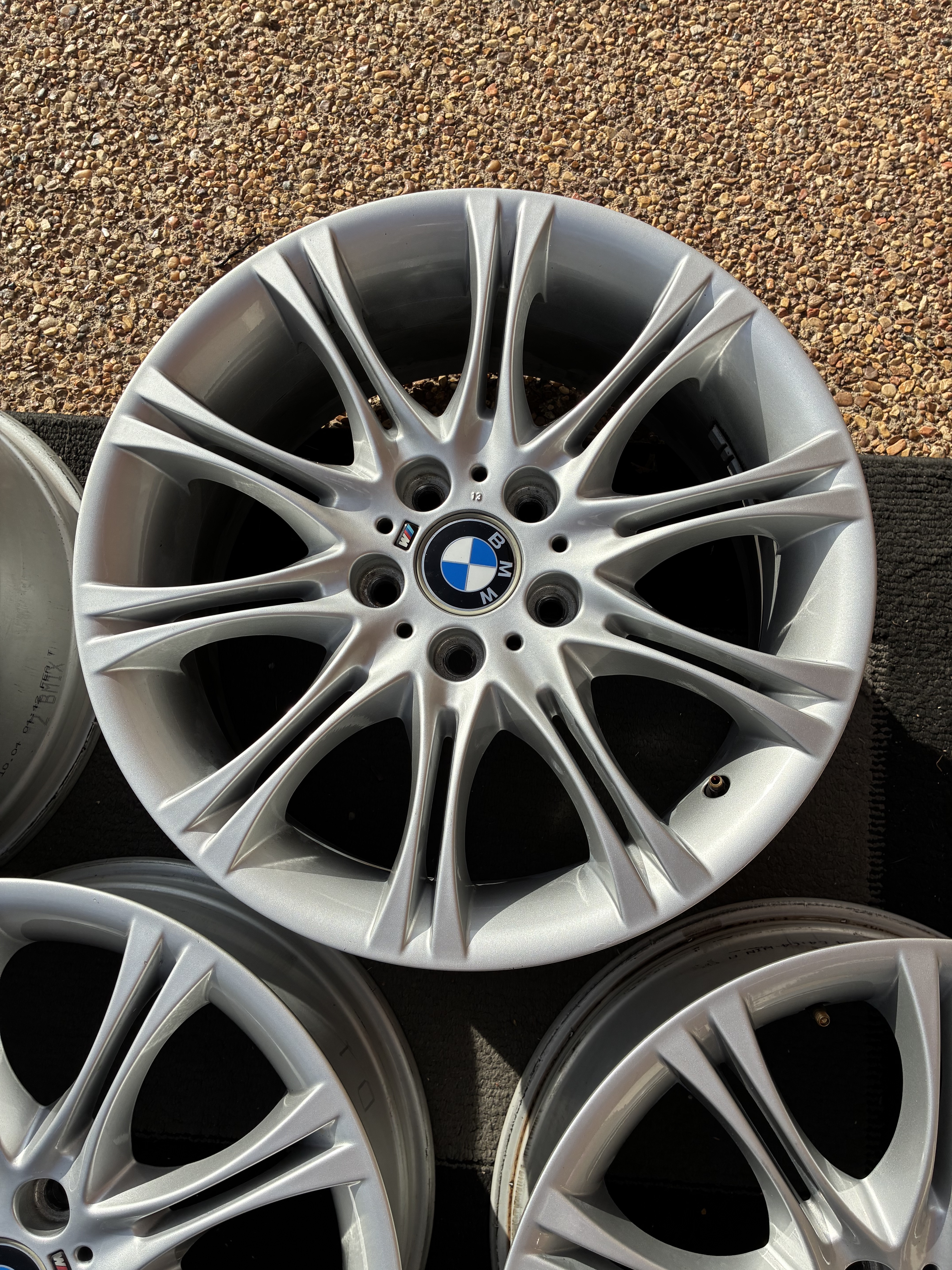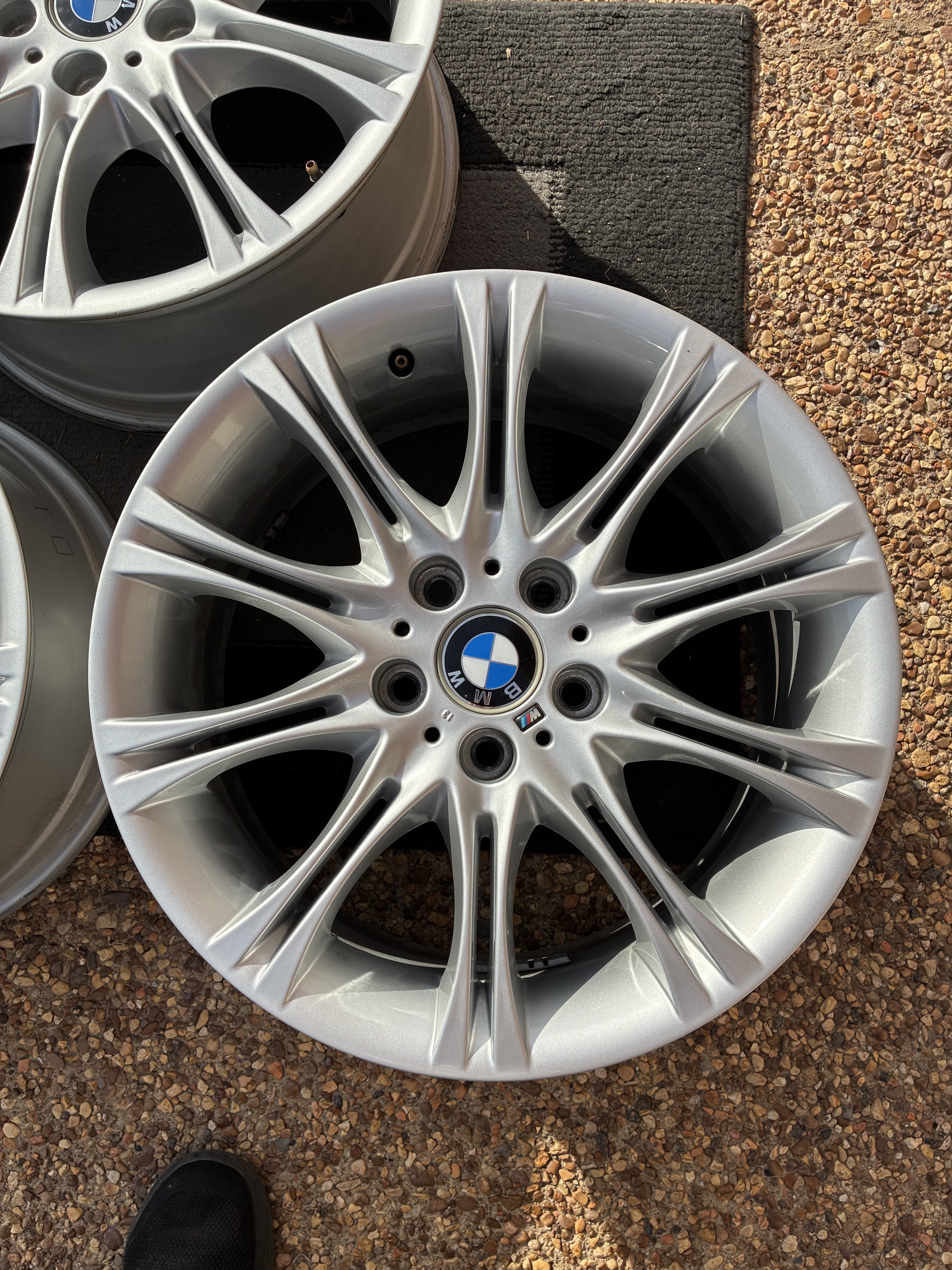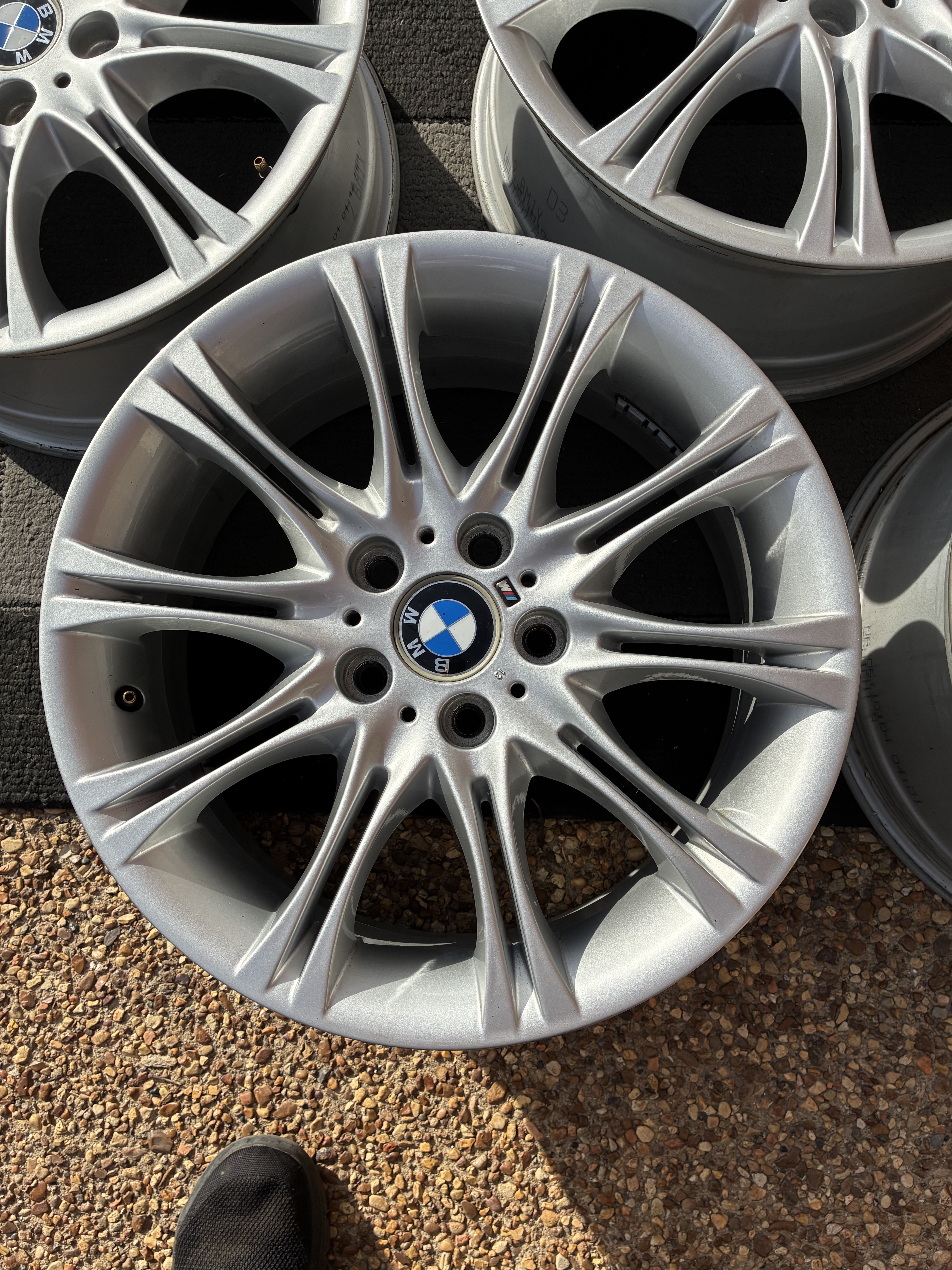 Set of (4) Style 135 E46 ZHP M Double spoke staggered wheels. (2) 18X8" and (2) 18X8.5". Removed from car at 3k miles. No curb rash. Two pinhead sized nicks on one wheel, otherwise wheels are as new.