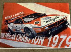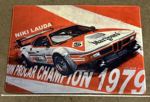 New BMW ///M1 non-slip carpet/wall art. Great piece of Motorsports history from the late 70s and early 80s. This M1 Procar was driven by Formula 1 champion Niki Lauda in a support series at the Monaco Grand Prix. - Dimensions: 35x24” (89x61cm) - Can be framed, hung on walls as art, or on the floor. Great for any motorsport enthusiast. Perfect addition your man cave or garage etc.