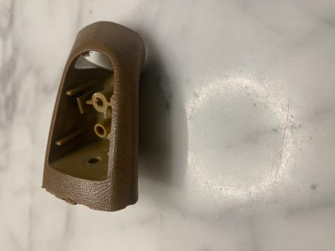 All screw points intact. Has hairline cracks which do not affect the integrity of the parts intended functionality. Would epoxy the inner area to reinforce prior to install