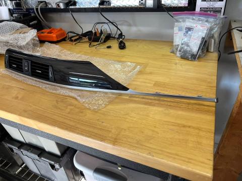 This is a total interior trim set that includes the trim for the drivers side dash vent, the center vents over to the passenger side and the console. All three pieces are in perfect condition, piano black wood finish.