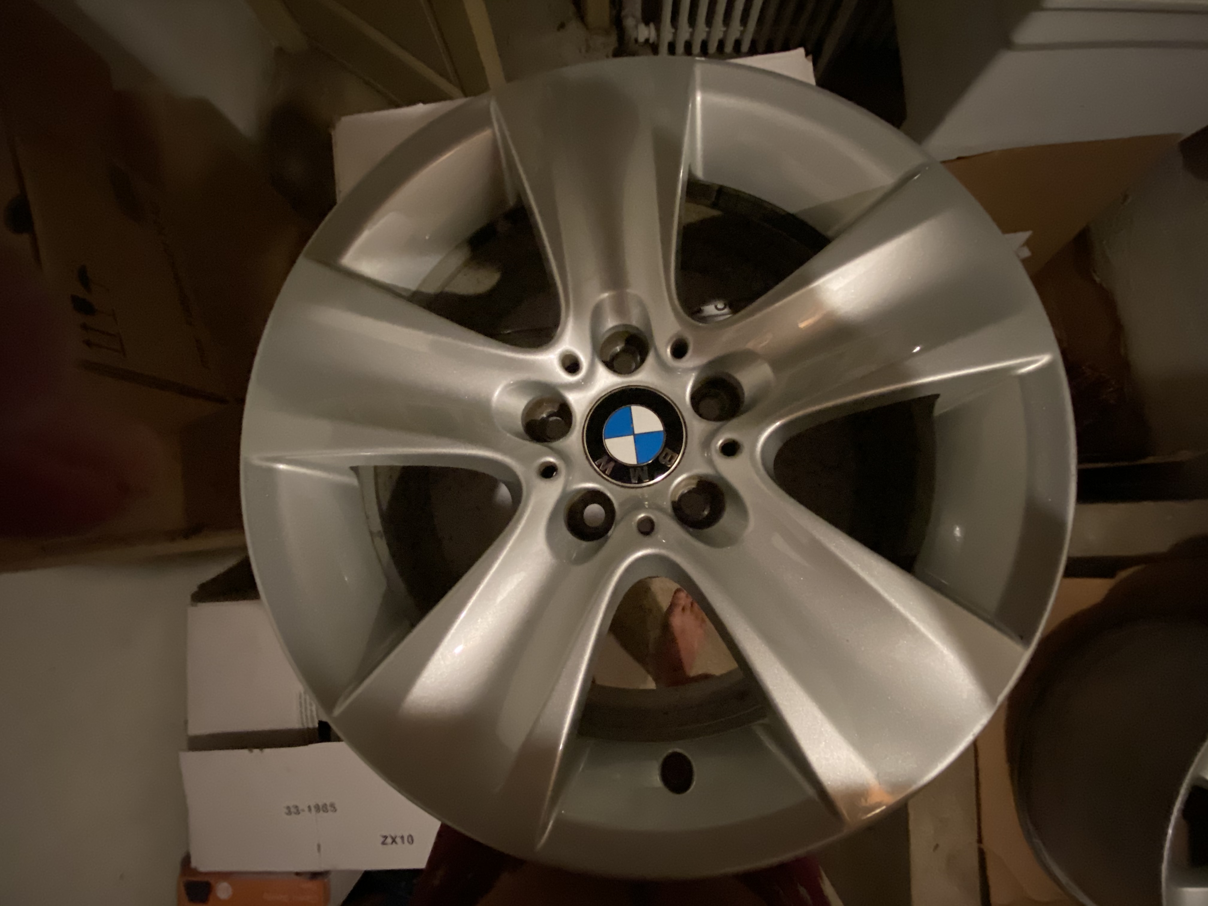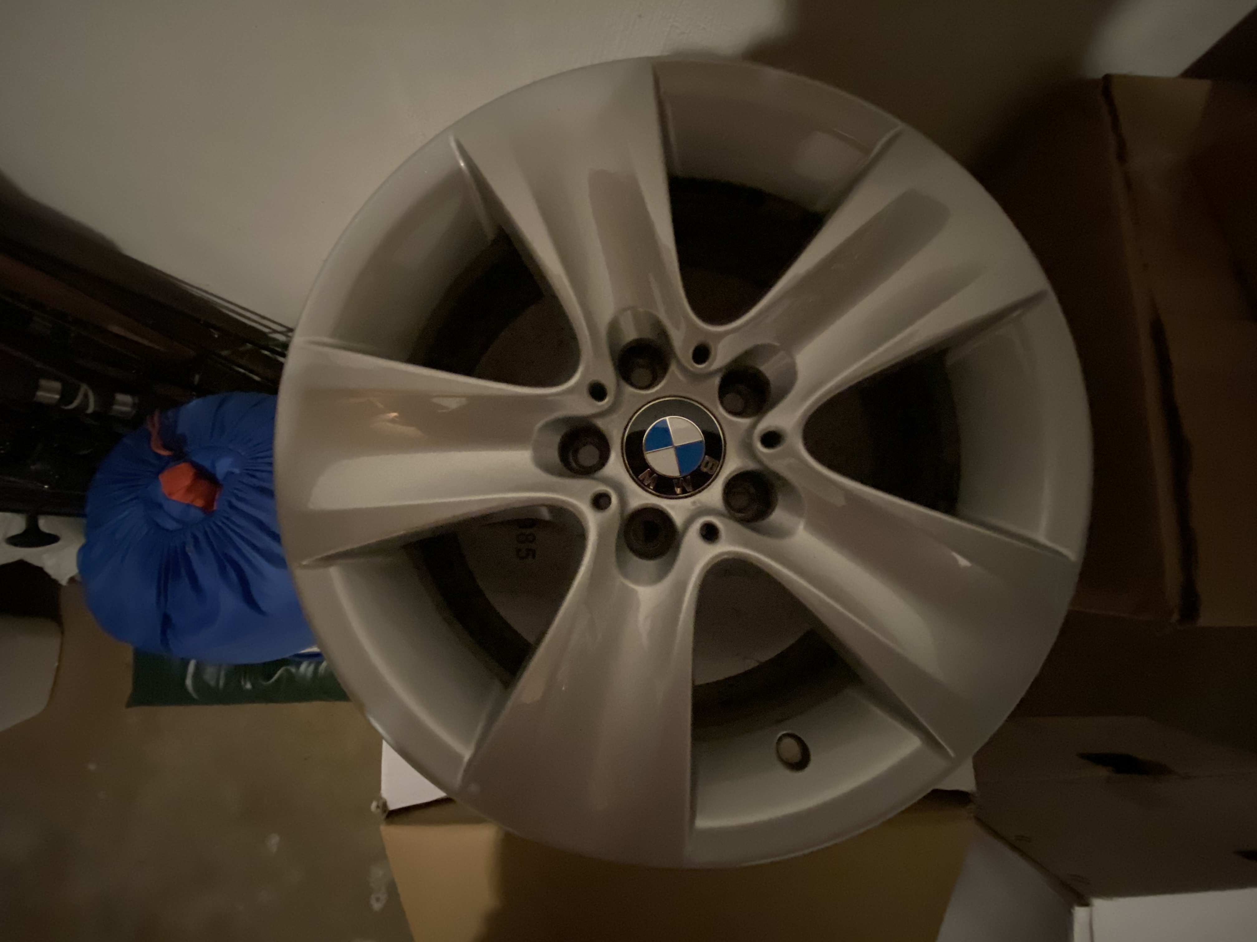 Set of 4 OEM 327 style 17” wheels from 2013 528i x-drive. Replaced these wheels w/aftermarket 19’s at approx. 75000 miles. Very good condition, some minor curb marks which have been touched up, as shown in photos. Wheels are straight/true. Would make an excellent set of winter spares.