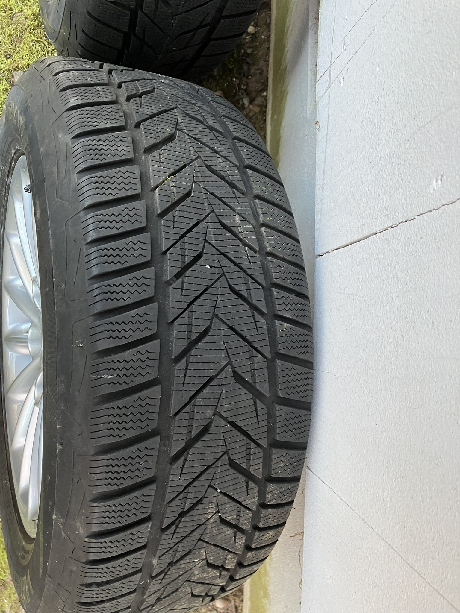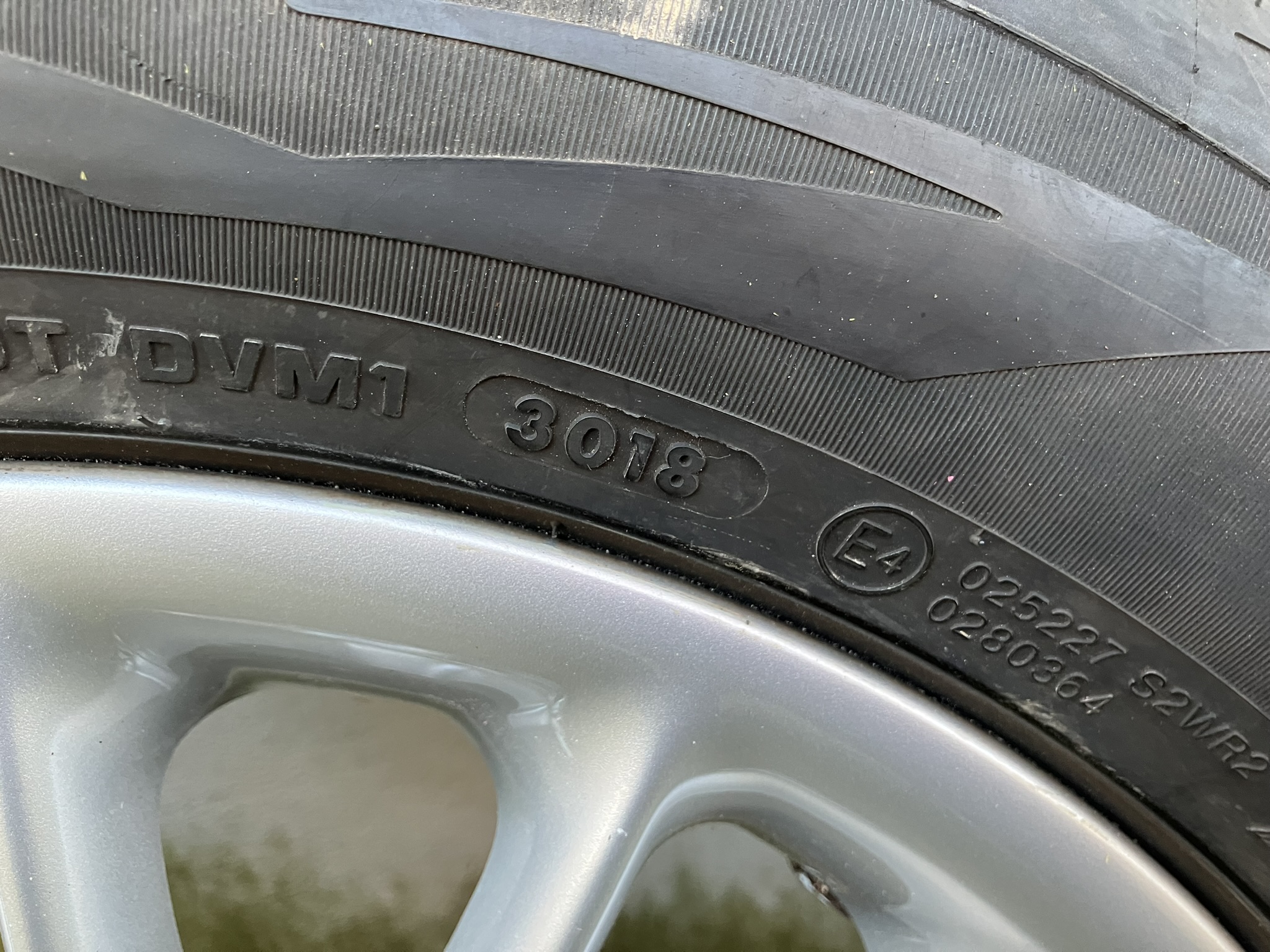 mounted on factory BMW wheels that have been used about 7,000 miles over 5 years of winter driving. Tires have been rotated front to back and have remaining tread depth of 8/32". Rims are in excellent condition with no curb rash. The manufacturer date of the tires on the sidewalls is 3018. These snow tires were used on my E39