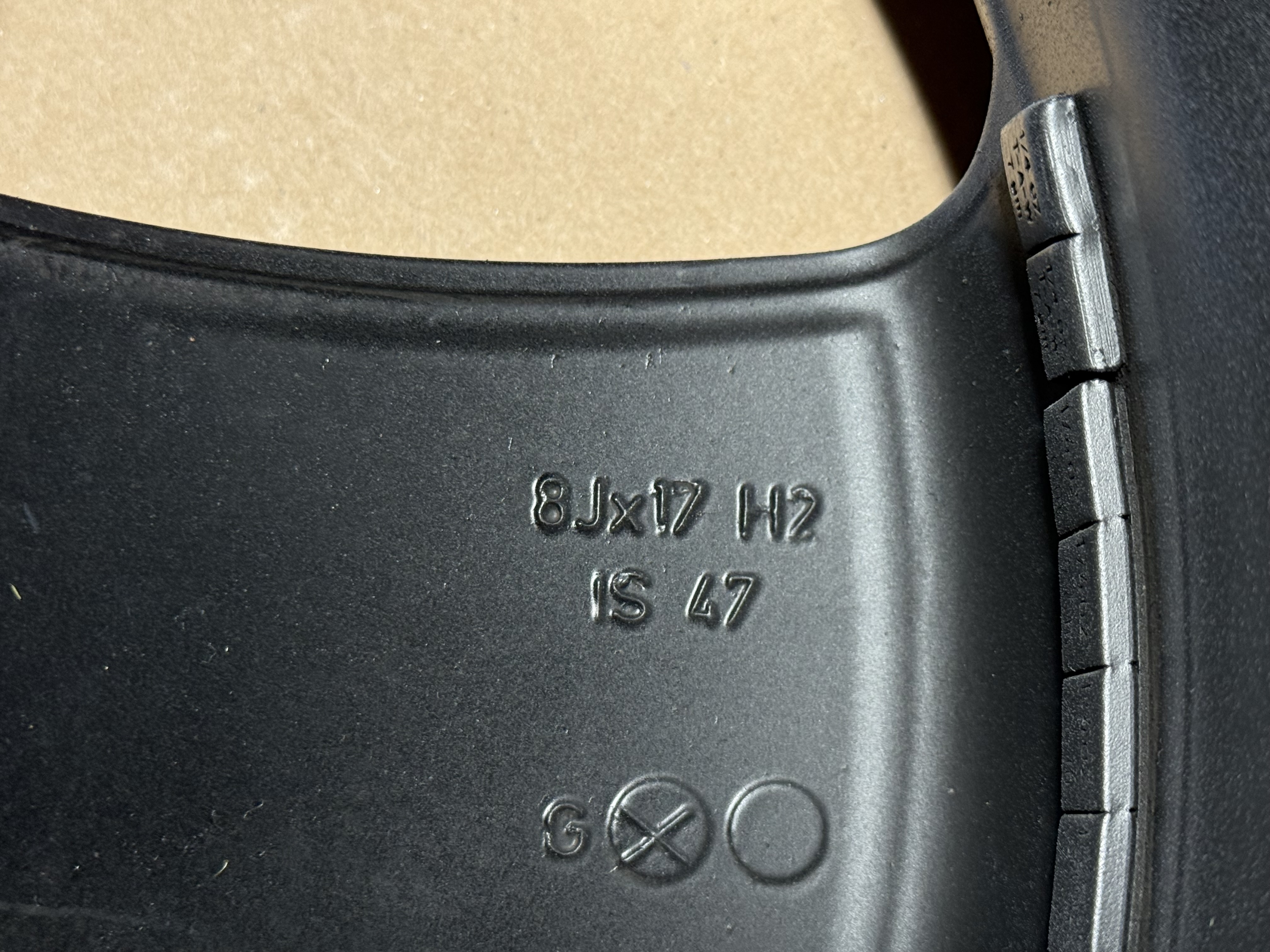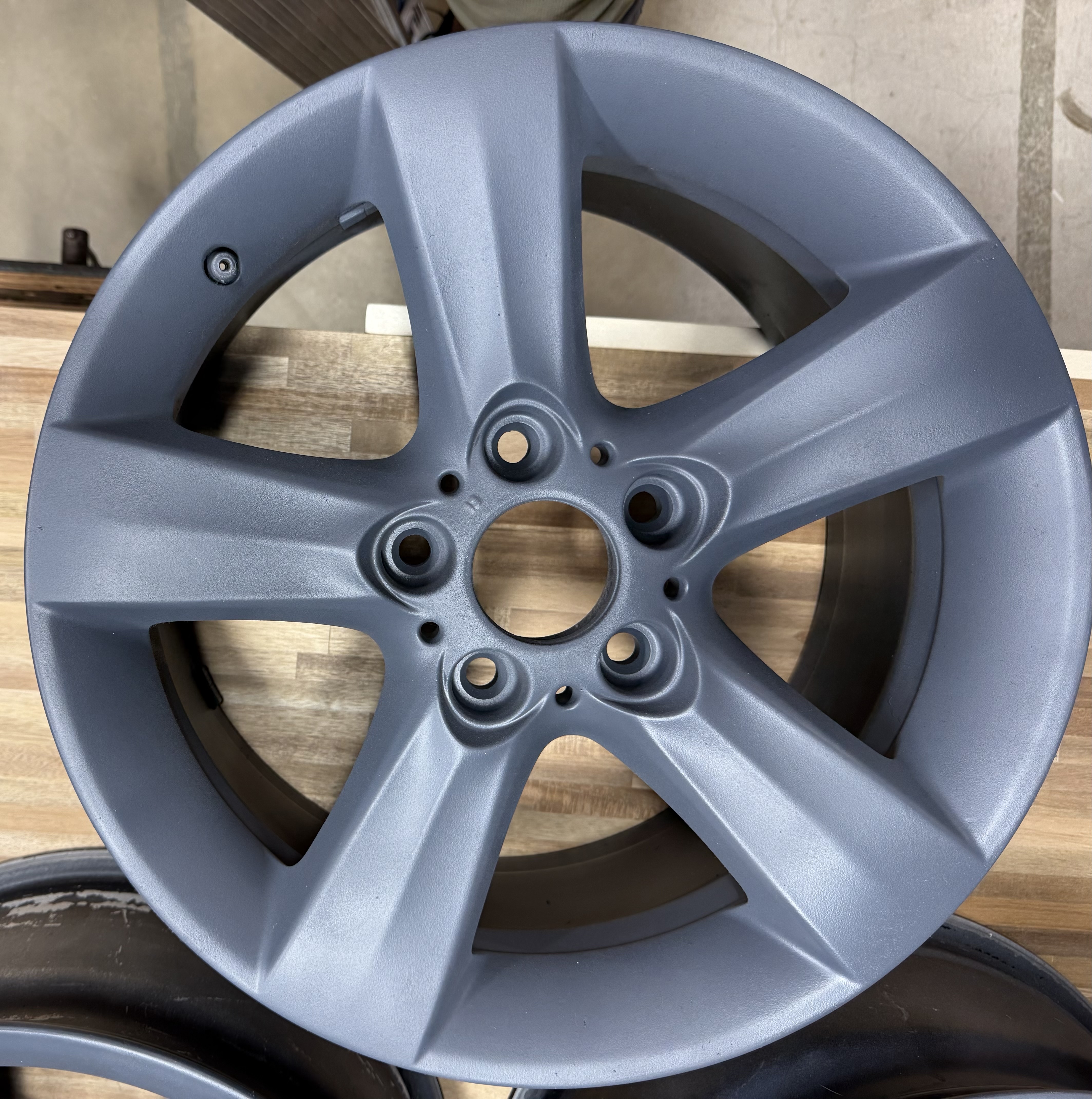 Genuine BMW rims. OEM Part #36116758987, Style 119. Bolt pattern 5x120mm, Size 8Jx17 H2, Offset IS47 [or ET47]. AlSi7Mg Aluminum Alloy (Light; High Strength; Corrosion Resistant). Made in Austria. For 3-Series and likely M3. Painted with Plasti-Dip rubber coating. Cash Only. Will ship at buyer’s cost.