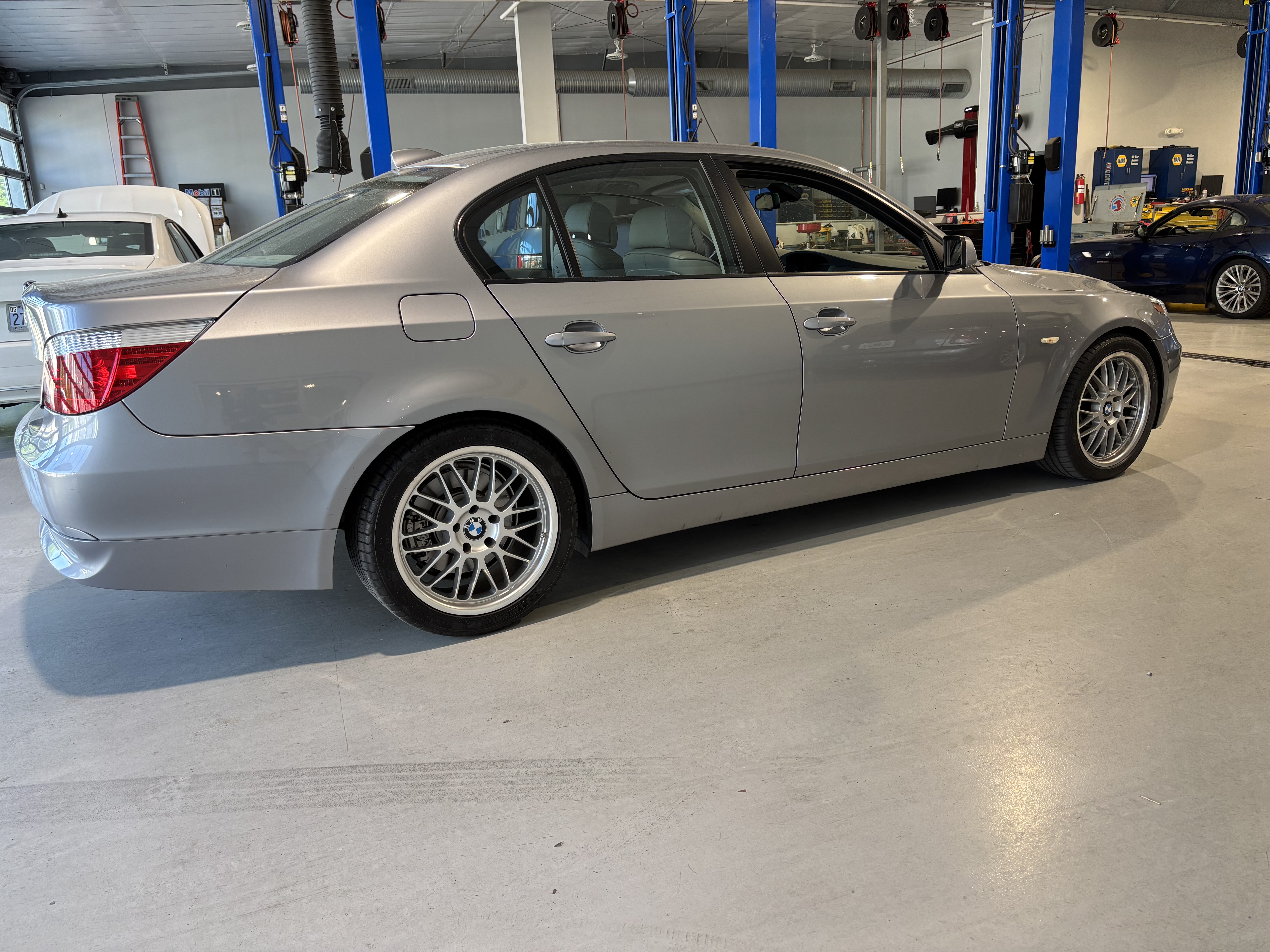 Beautiful 530i for sale. Purchased the car in 2008 after the original owner traded it back in for an SUV. Adult driven. Excellent maintenance records, no leaks, garage kept. 18" Beyern basketweave wheels with staggered fitment. 245 front and 275 rear Michelin Pilot Sport A/S 3 tires are in great shape. I apologize for the sideways pictures.