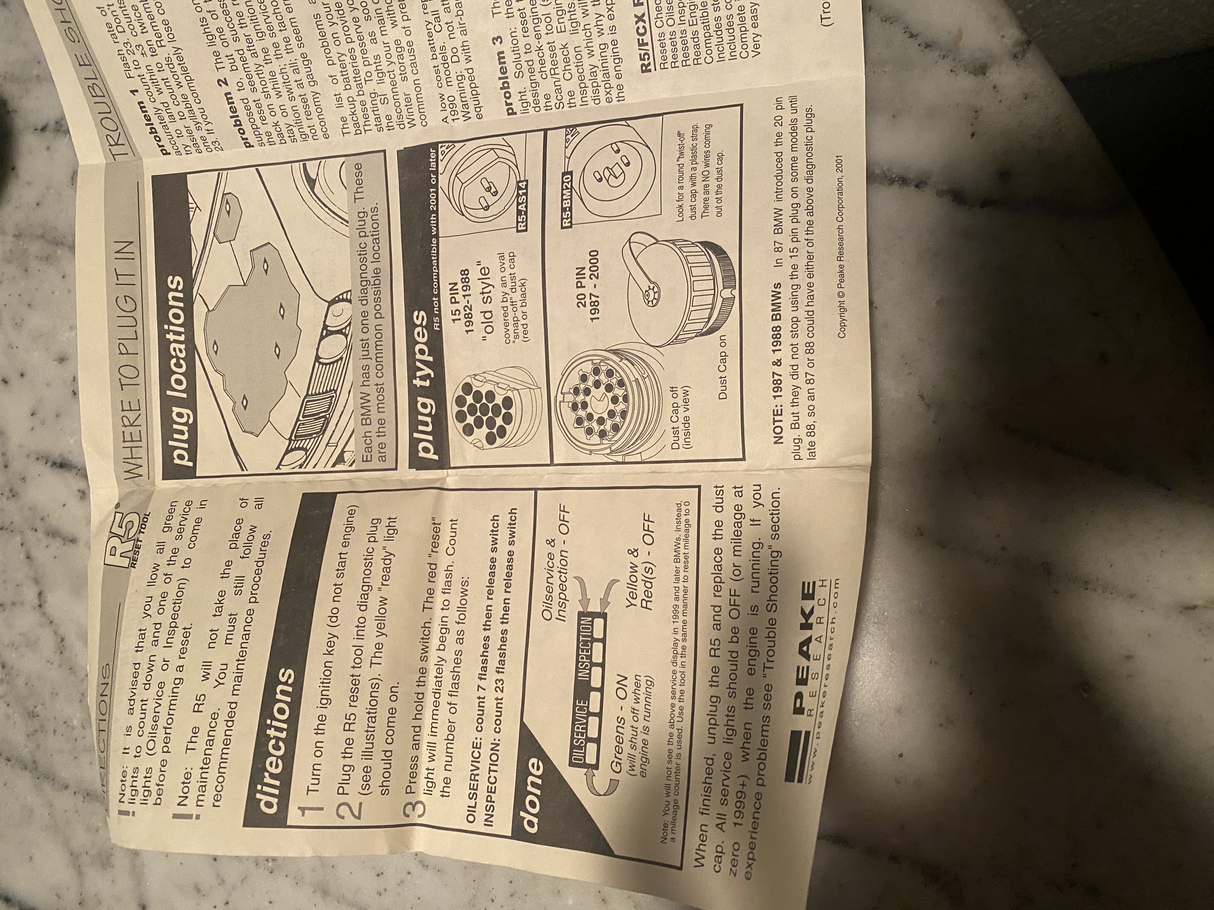 ***SOLD*** Peake BMW R5 electronic reset tool for service lights. Includes original case and instruction sheet.