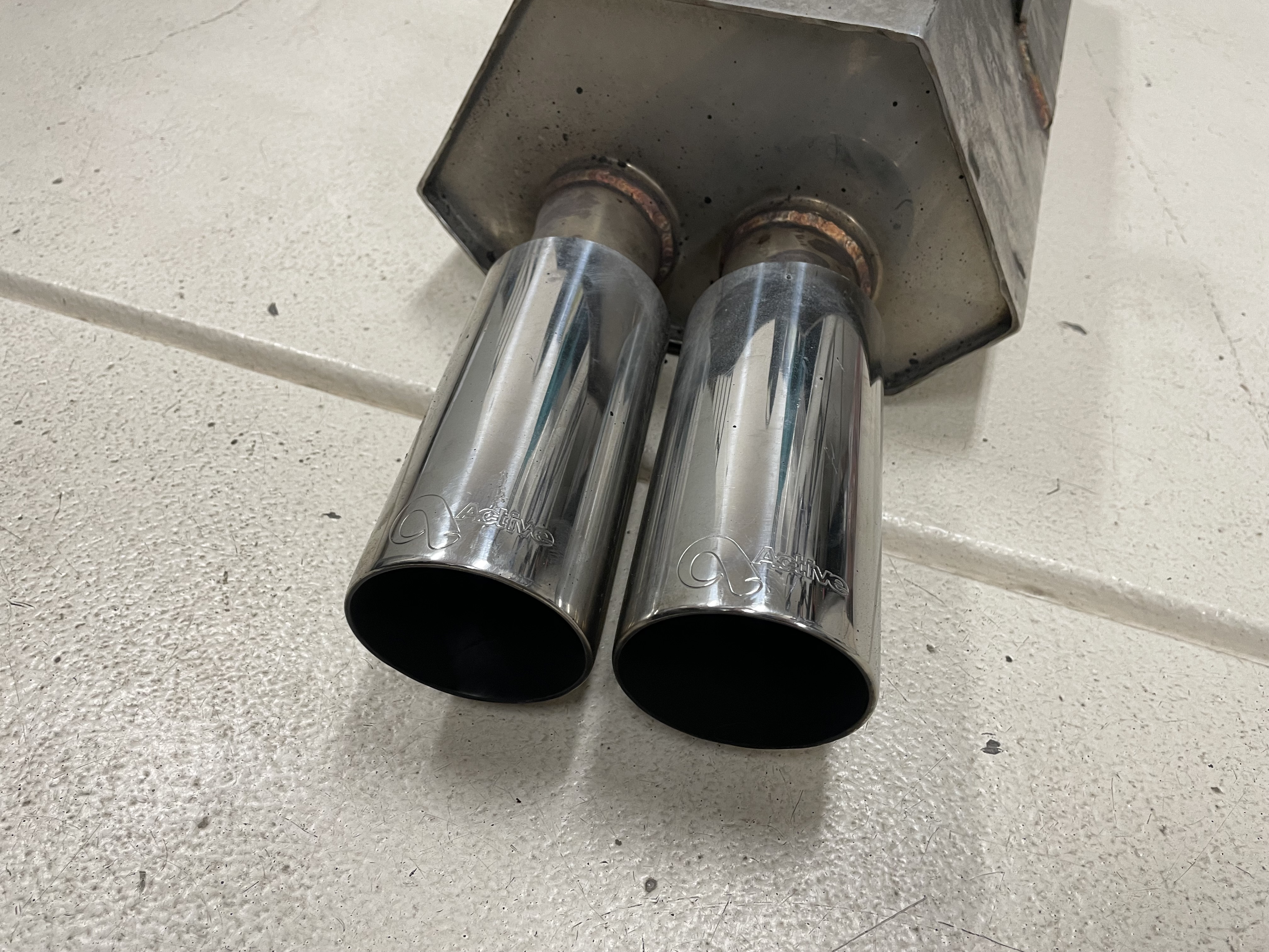 Active Autowerke Gen2 muffler: $550. The muffler has a dent on the corner and a small split that can easily be welded if desired. It made no unusual noises and functioned fine when it was on the car.