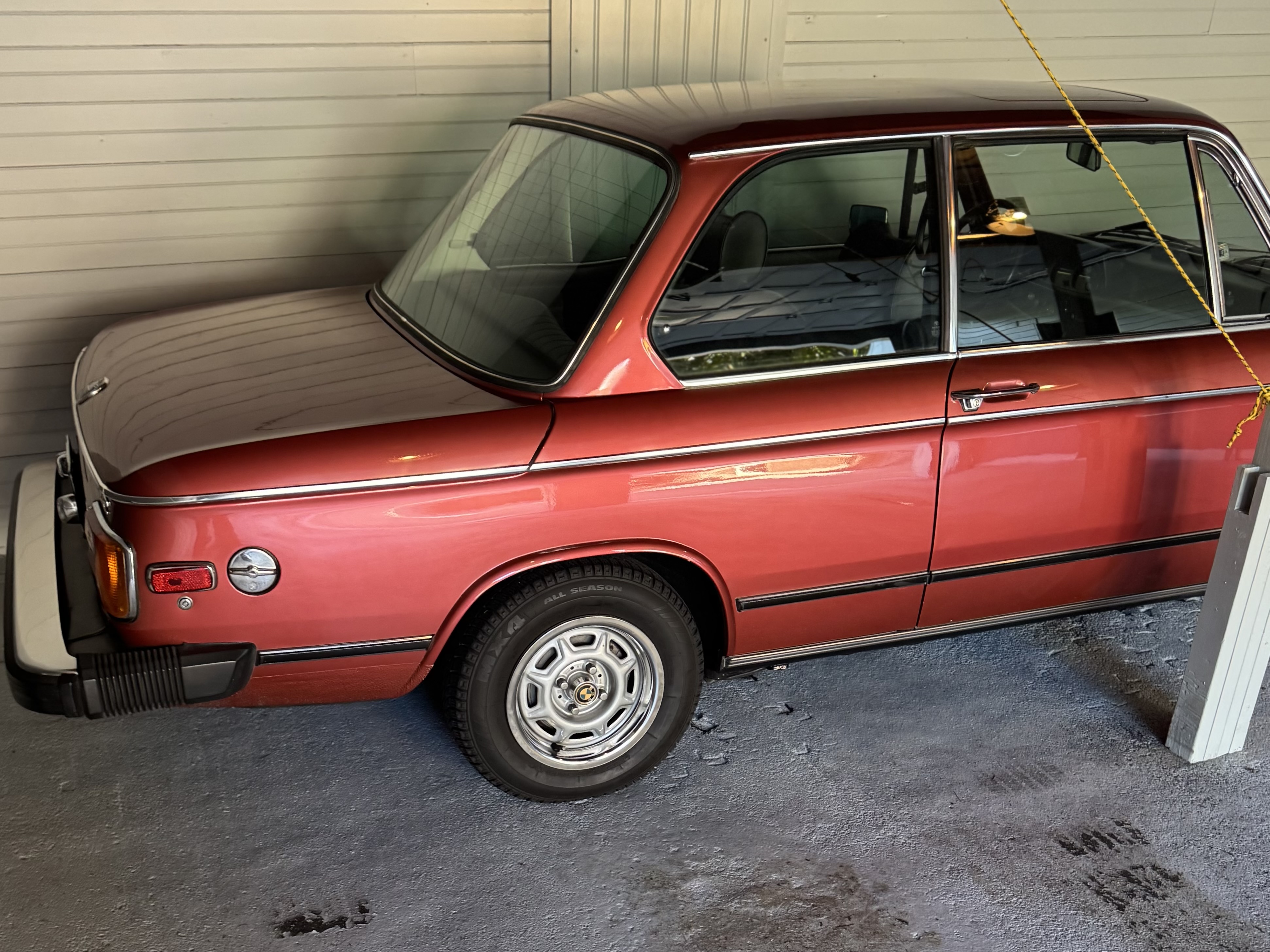 A pristine single owner 1976 BMW 2002 finished in the original Granatrot-Metallic with only 42,000 miles. It features a black vinyl interior and a 4-speed manual transmission. The seller purchased it new about 50 years ago when it was released, and he used it only for very short trips. Car is in perfect working order with no issues to note. Not a re-paint and it has no blemishes or rust. The vehicle has only been used for very short trips in good weather since its original purchase.