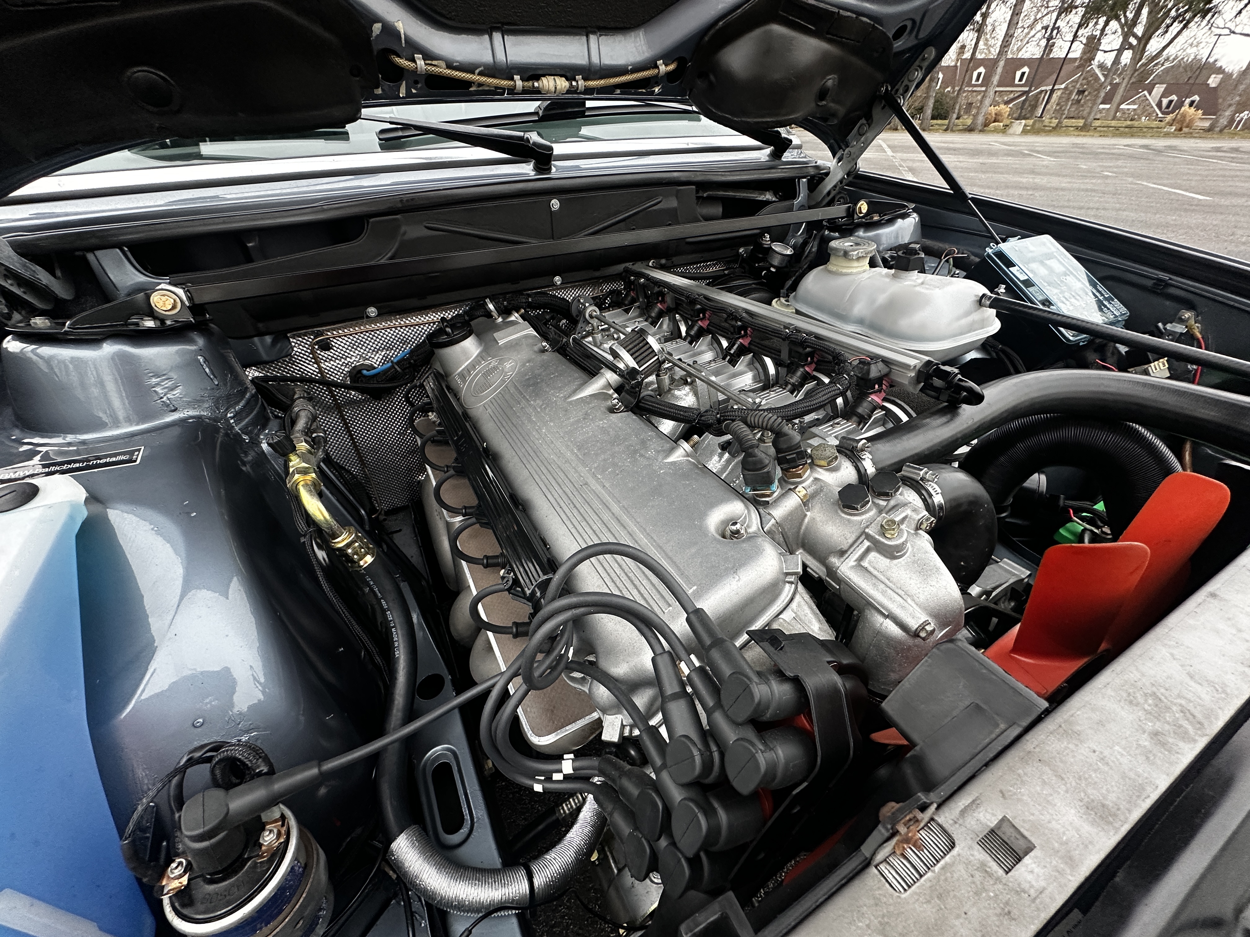 At the core of this build is a Metric Mechanic 4.0-liter in-line six that started life as an M30 engine, a truly special power plant that defines the car’s personality. This engine was sourced new in a crate from a fellow enthusiast and paired with Extrudabody individual throttle bodies (ITBs). Engine management is handled by a Megasquirt ECU, with a base tune completed by Kassel Performance. The car will benefit from final tuning to fully unlock the engine’s potential. To help keep this special engine cool a custom oil cooler was fabricated. This 528e also sports a custom exhaust that gives the car the appropriate soundtrack for those Sunday morning drives. Power is delivered through a new old stock Euro dogleg 5-speed transmission, providing a true touring car driving experience. The result is a torque-rich, motorsport-inspired drivetrain that remains entirely streetable and engaging.