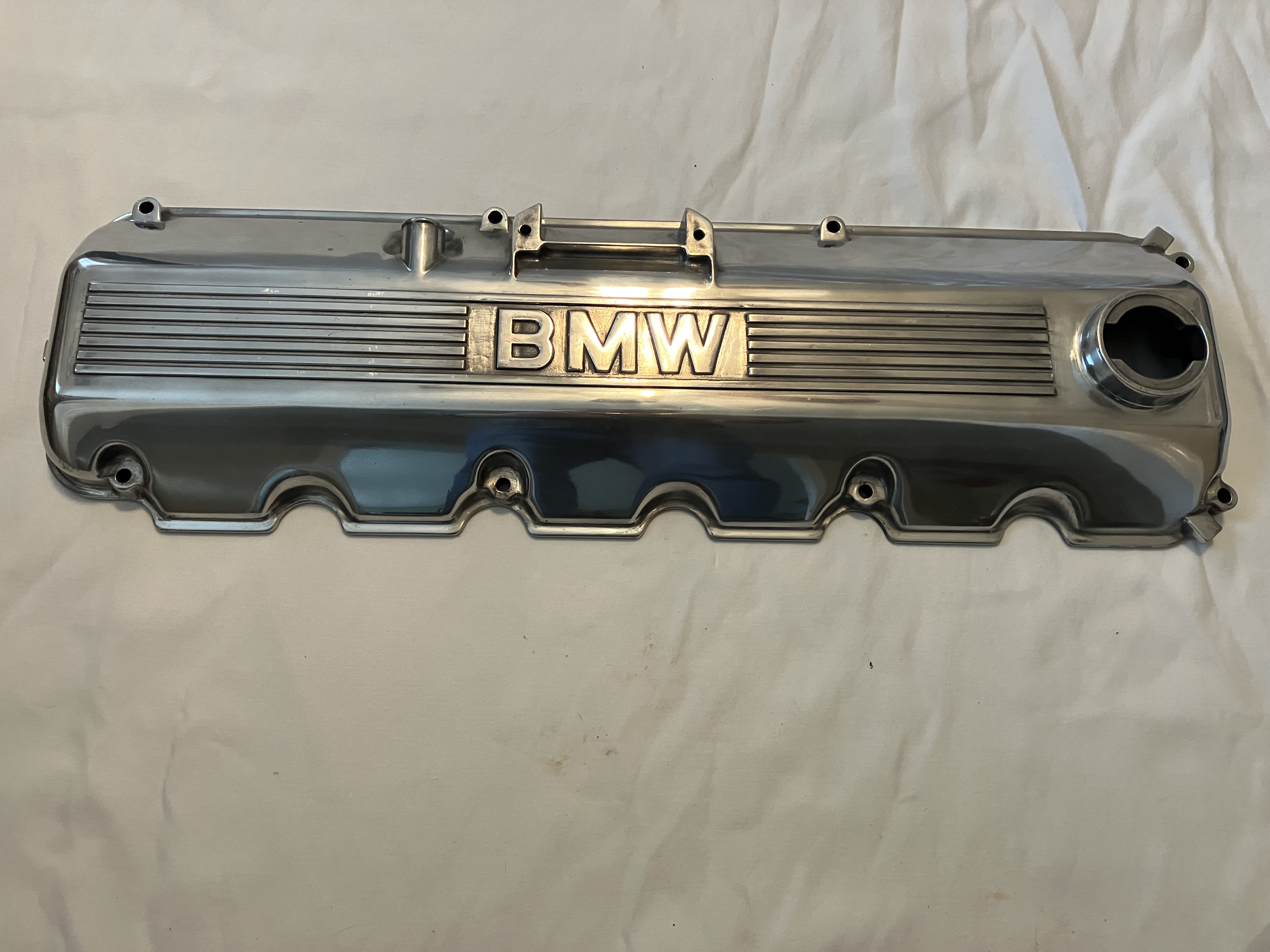 Hand polished M20 valve cover. I spent over 15 hours polishing this valve cover to a mirror finish. The cover is in excellent condition and the mounting surface is perfectly flat. This cover will definitely add some flash to the engine bay of your BMW classic!
