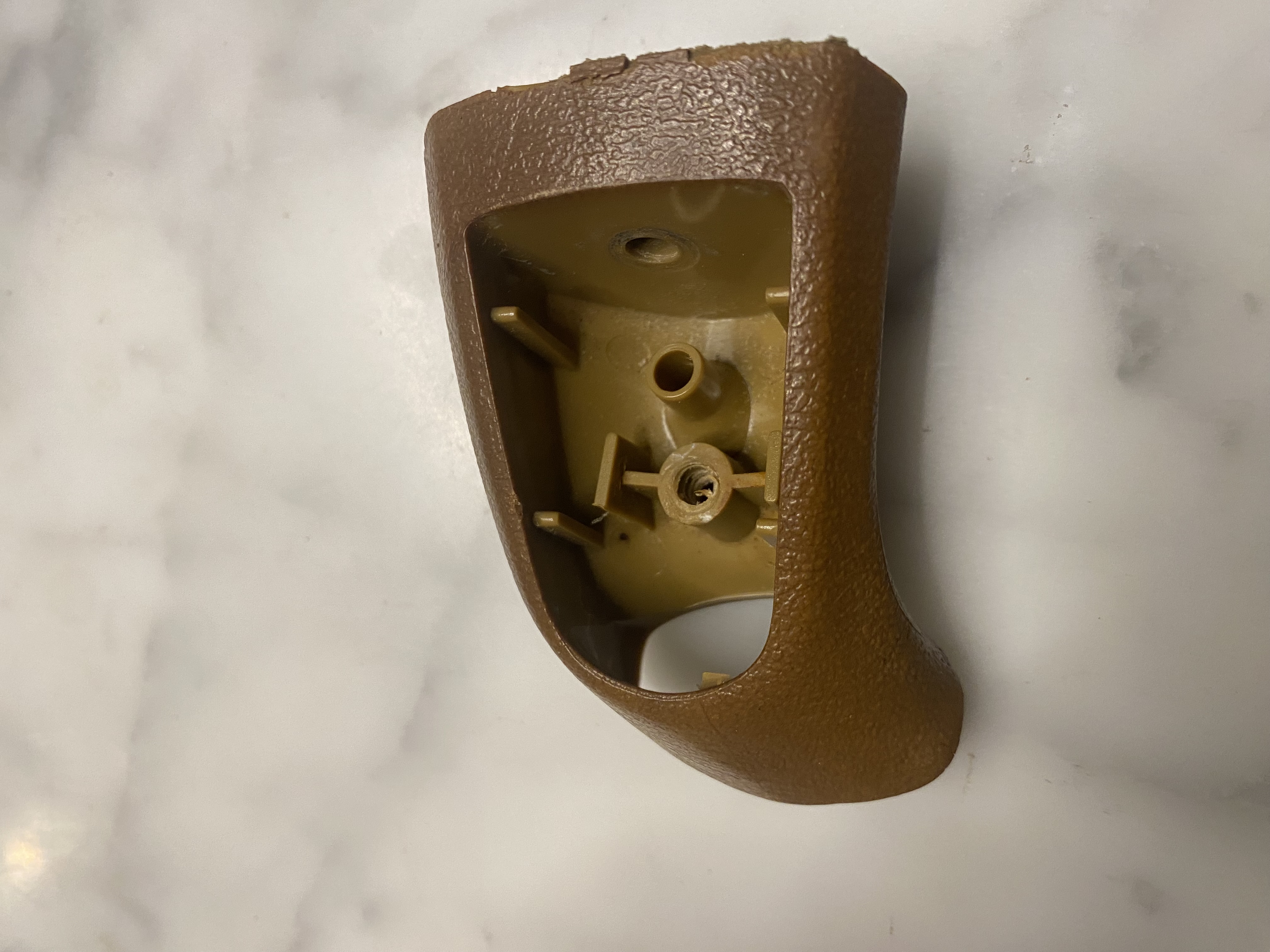 Armrest upper part brown right up to 9/80. Removed from a 1980 320i. Has hairline cracks. Structurally sound. I would reinforce with plastic epoxy prior to install.