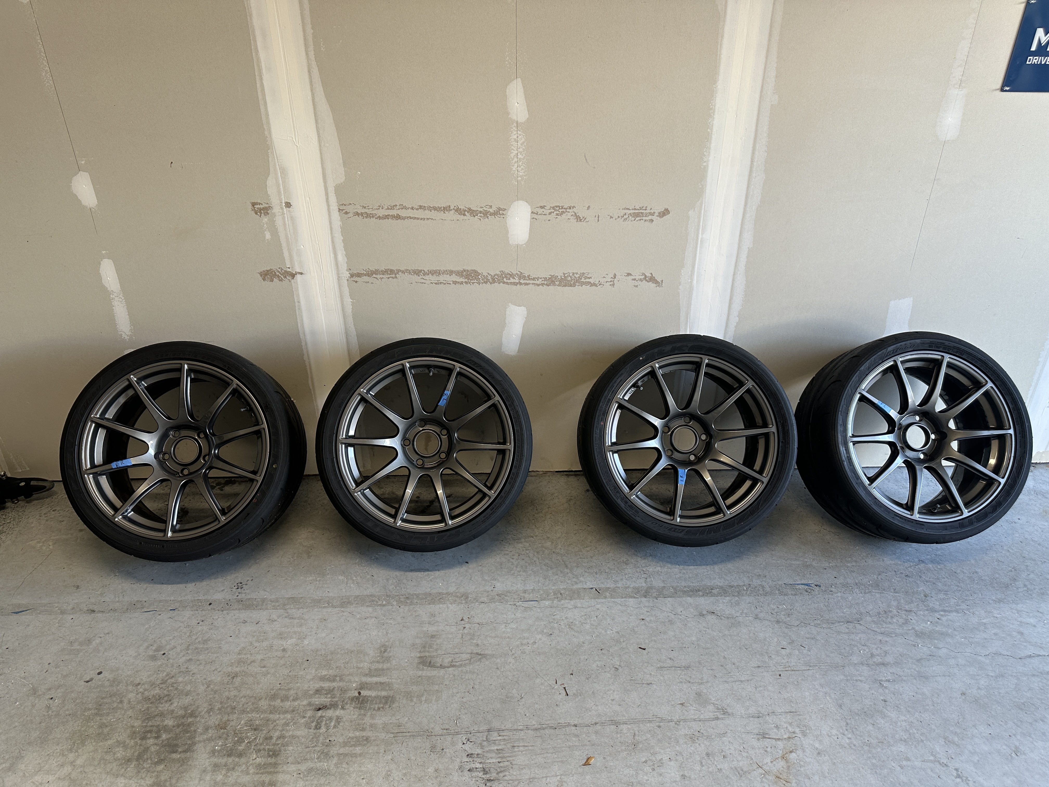 Full set of Track Wheels and Tires from 2001 M5. Front and Rear are 18" x 9" Team Dynamics Motorsport Pro Race 1.2 approximately 8 years old but stored for last 4 years. Tires are Toyo Proxes RA1 275/35. Tires used for roughly 8 track days and stored for last 4 years. Make an offer if you can use them.